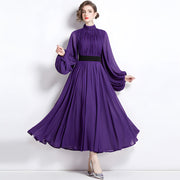 High Neckline Voluminous Peasant Sleeves Purple Chiffon Long Dress With Flowing Skirt - 752171614172_BAS - M