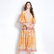 Printed Chiffon Plunging V - Neckline Front Split Long Dress With Waist Band - NRJ-720#2491 - M