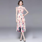 Floral Canvas Miyaki Fold Blouse Pleated Skirt Two Piece Chiffon Set - 709212862350_BAS - M