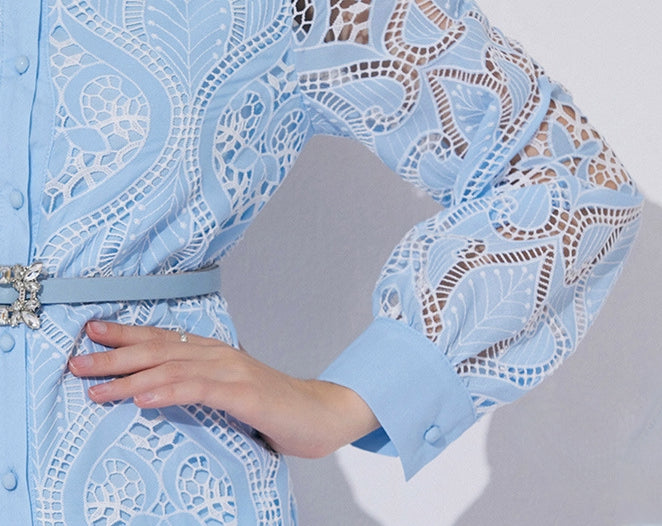 Celestial Eyelet Belted Shirt Dress - 901028103574_BLUE