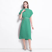Green Pure Elegance Pleated Pearl Belt Dress - M