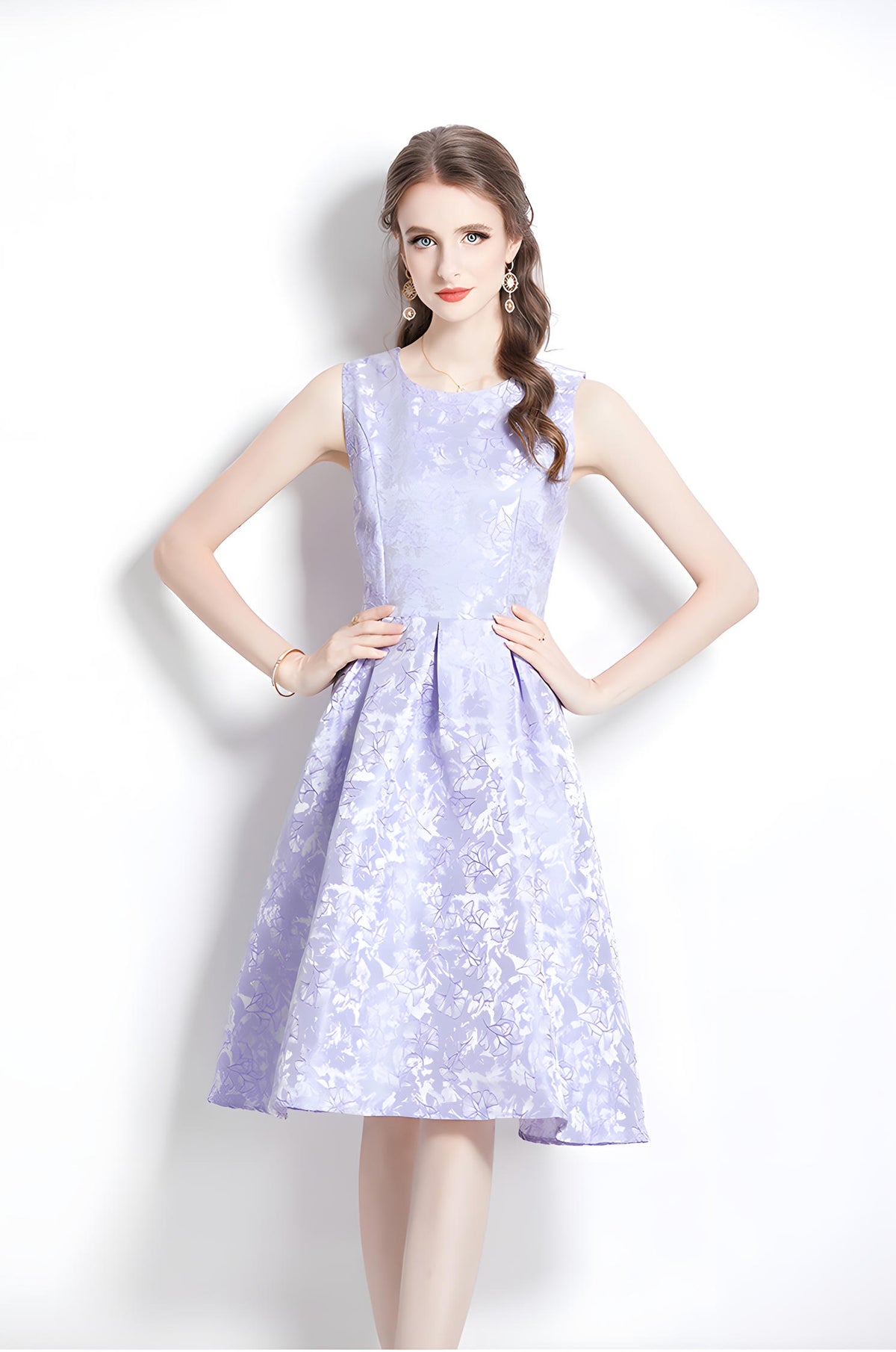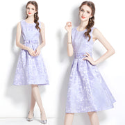 Jacquard Fitted Vest Sleeveless Dress with Pleated Skirt and Waist Belt - 734172936895_BAS - M