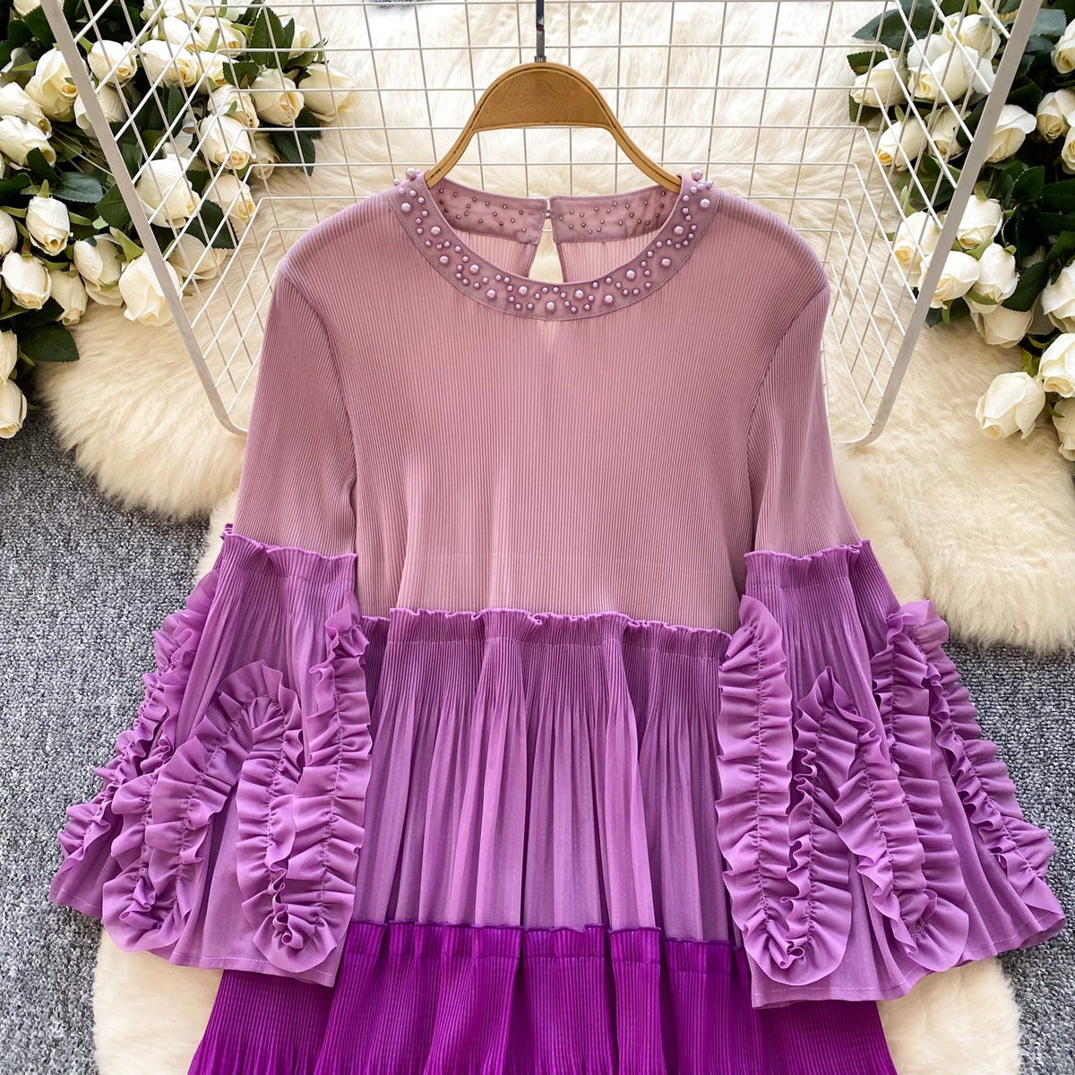 Purple Ombre Pleated Midi Dress - ONESIZE