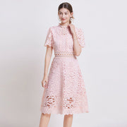 Blush Pink Lace Midi Dress