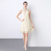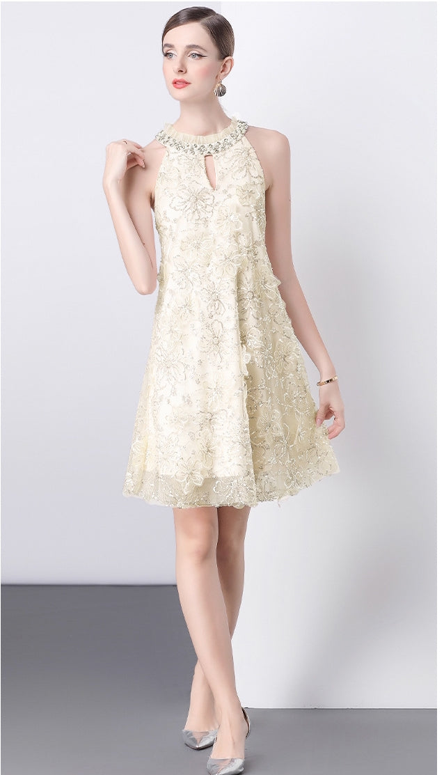 Elegant Pearl Embellished Lace Cocktail Dress - M