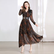 Elegant Serpentine Sheer Maxi Dress - 901487024172_BROWN - M
