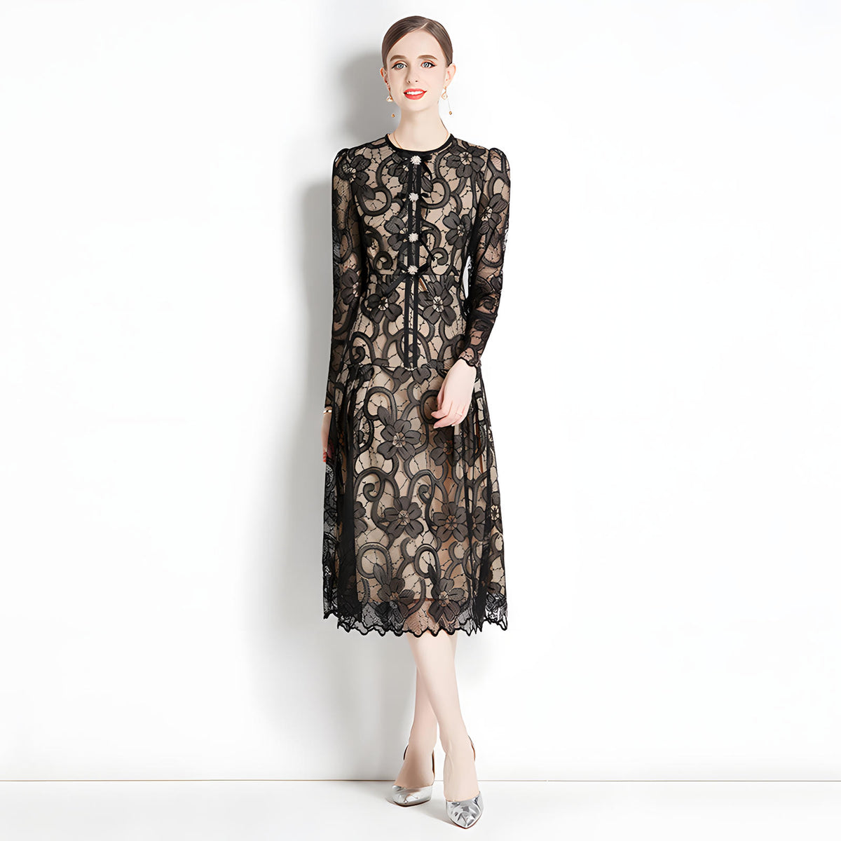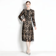 French Lace Front Bow Crew Neck Black And Nude Dress - 737166050267_BAS - M