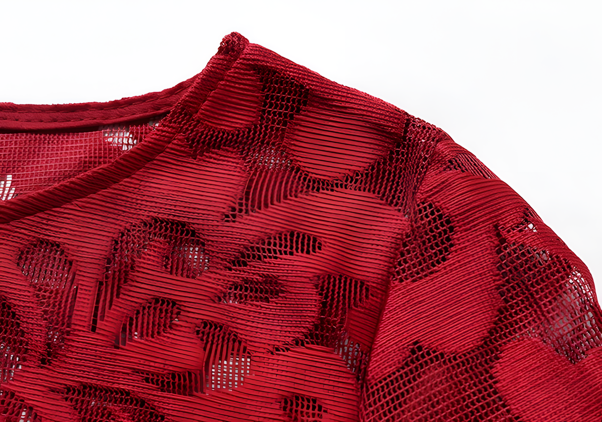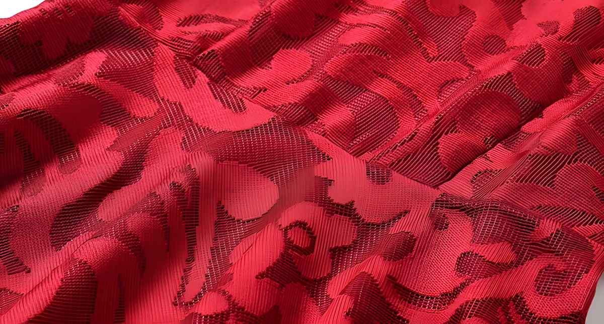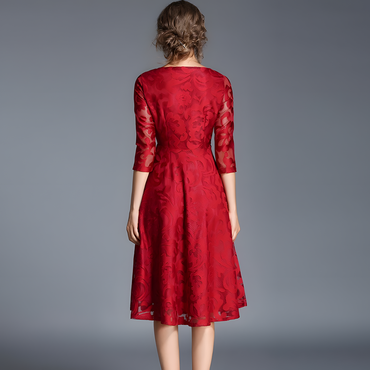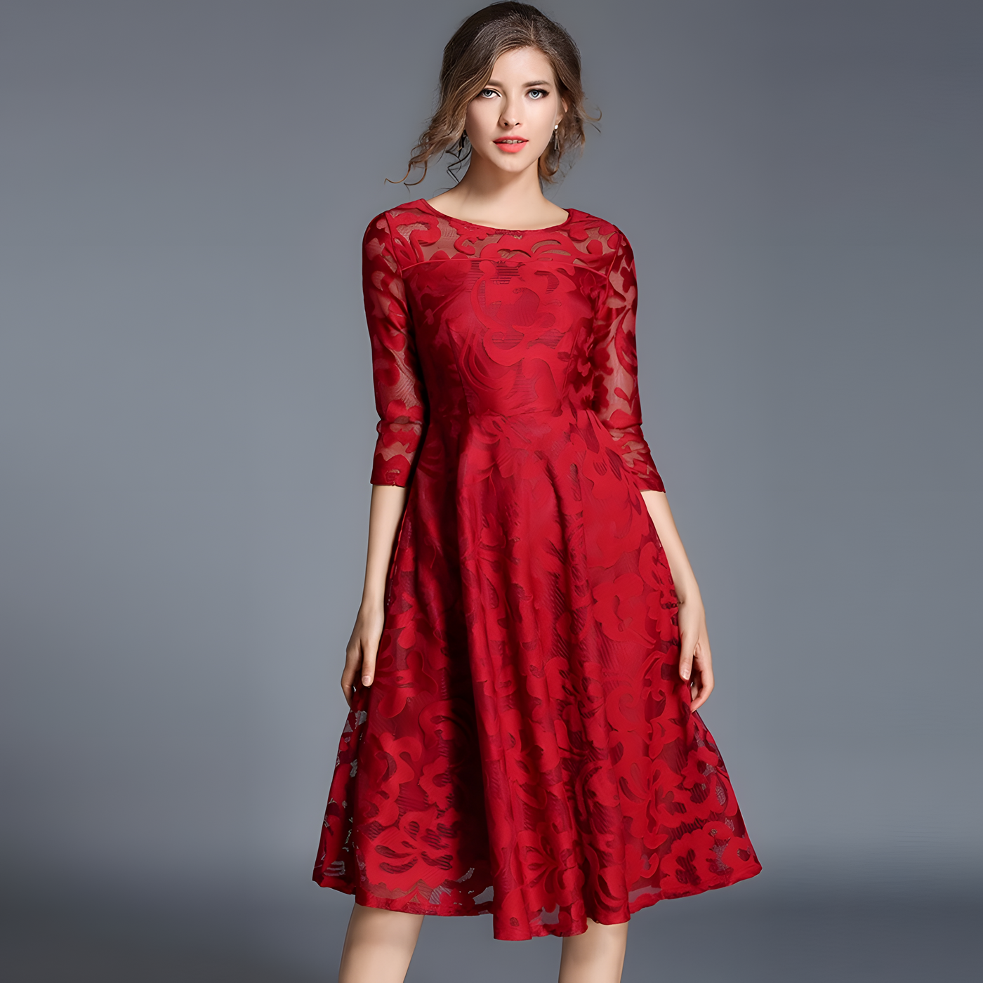 Lace Flocking Boat Neck Fitted Vest Large Hem Skirt Dress - 607715875502_CLARET
