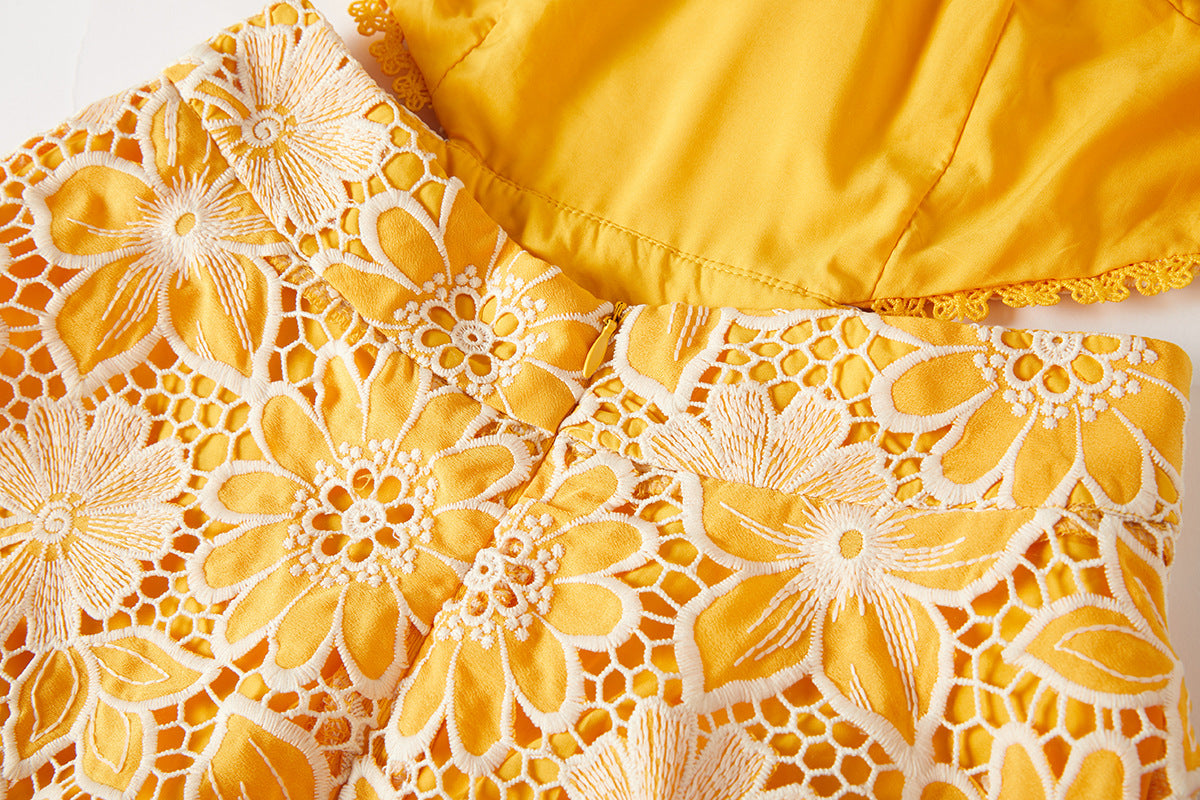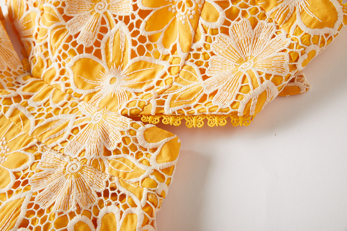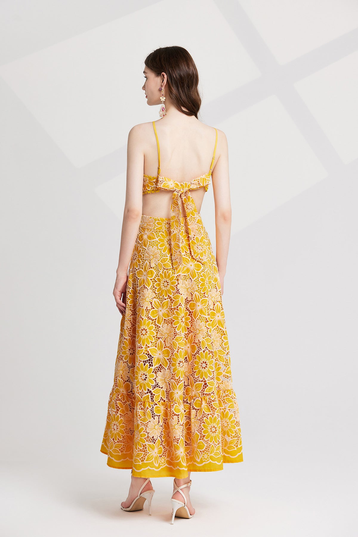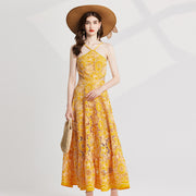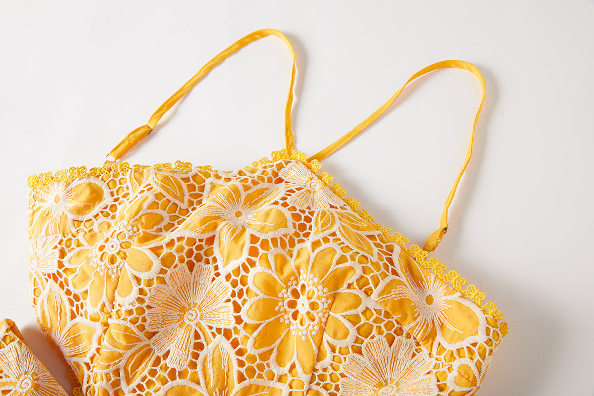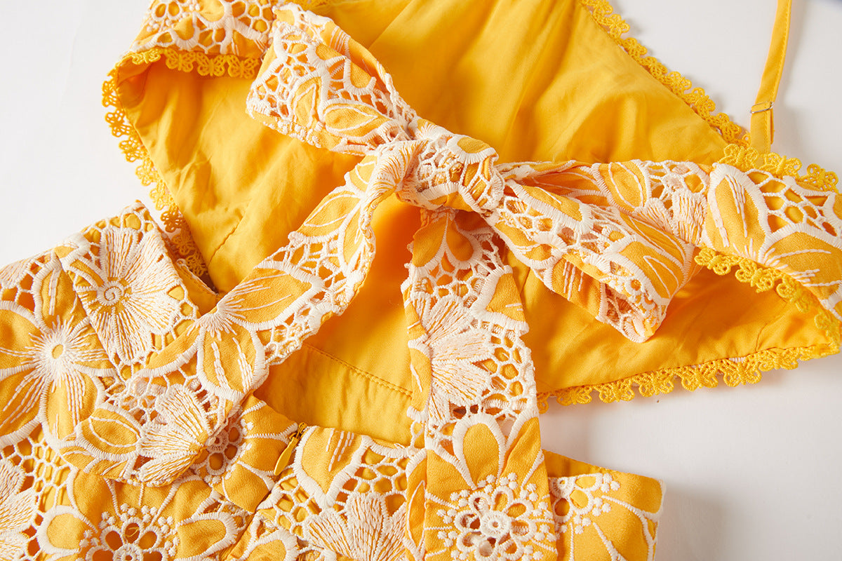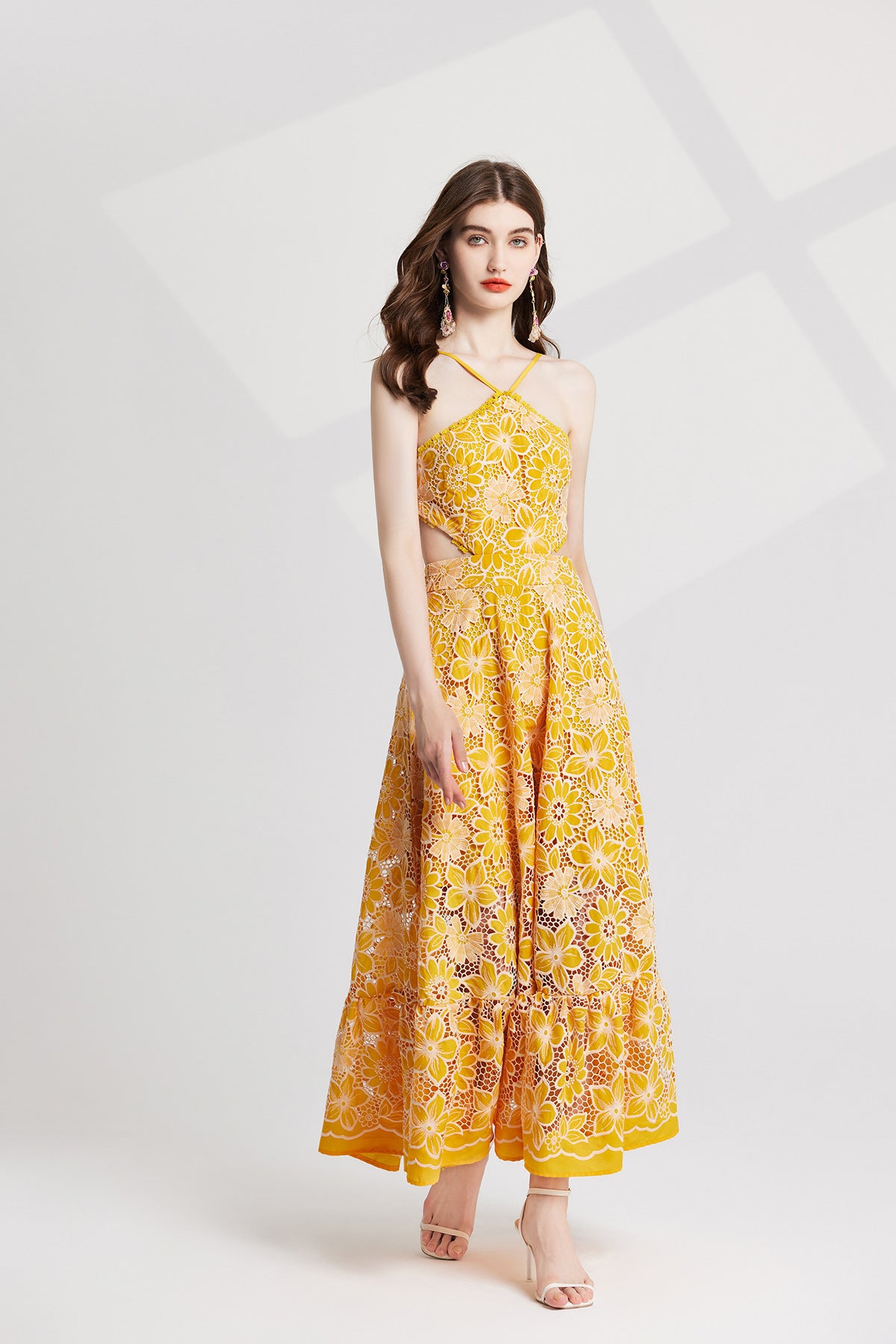 Luxury French Lace Halter Neck Holiday Breeze Black Dress - 829851111269_YEL - M