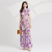 Luxury French Lace Purple Long Dress With Flutter Sleeve - 827491131616_PUR - M
