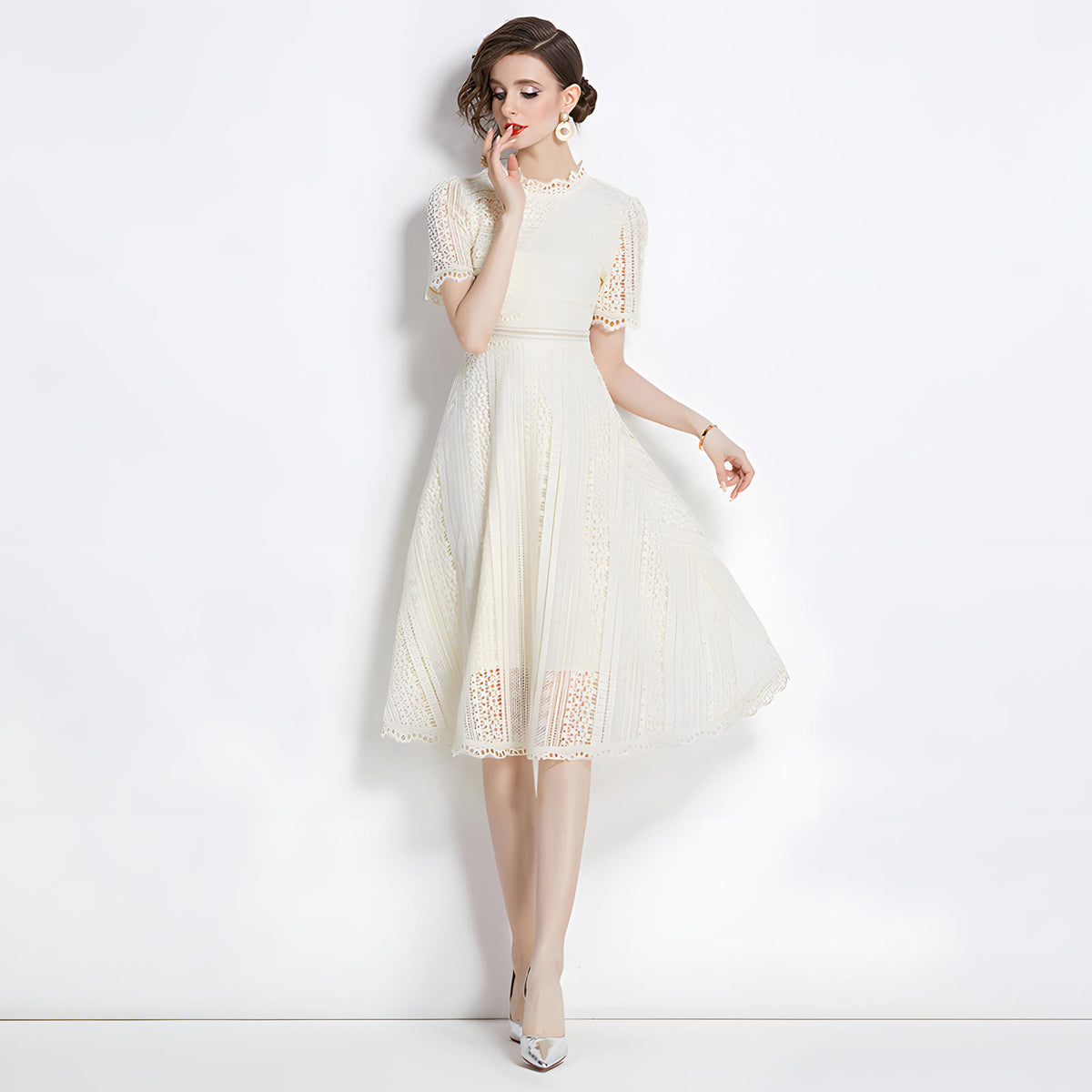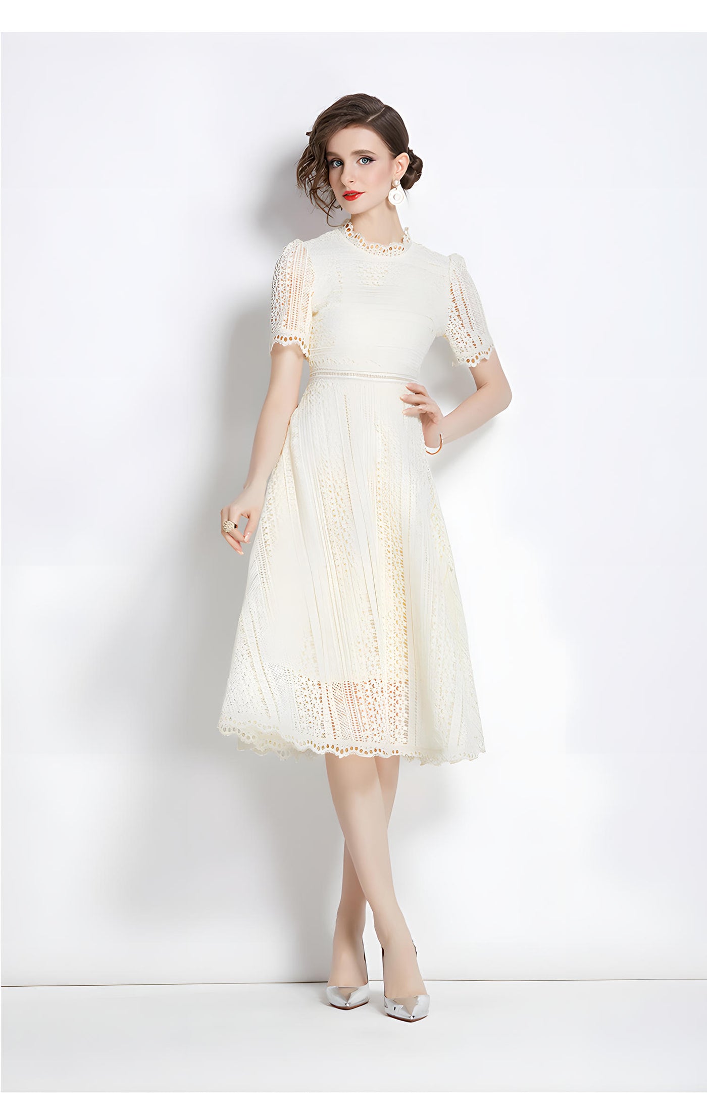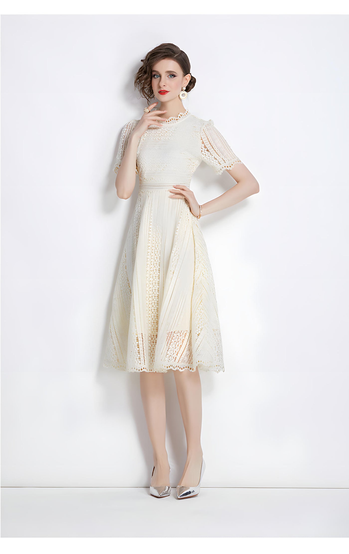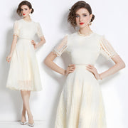 Luxury French Lace Jewel Neck Apricot Dress - 533#609_APR - M