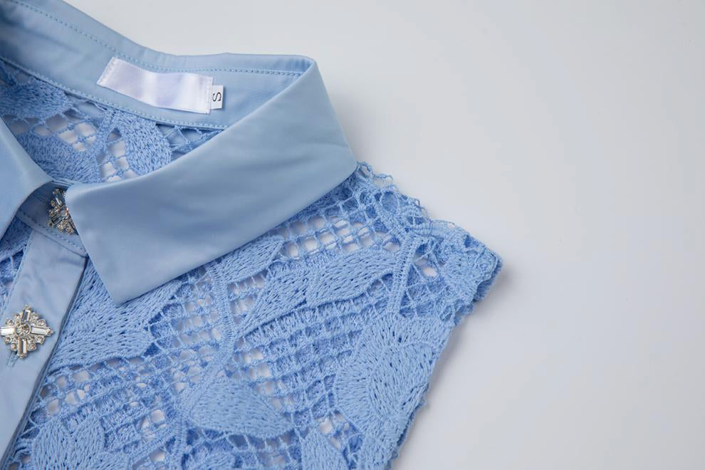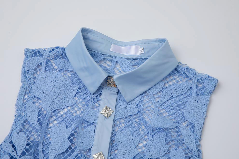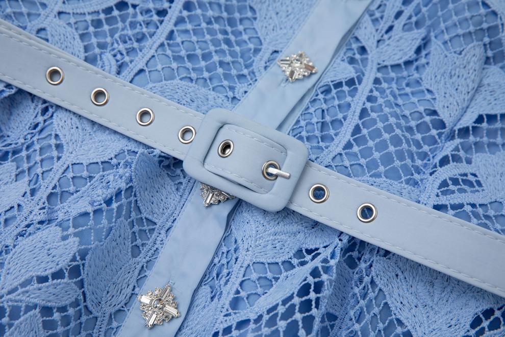 Sky Blossom Sleeveless Lace Midi Dress - 919430221311_BLUE - M