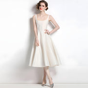 Retro Style Hepburn Skirt Fitted Vest Suspender White Satin Dress - 709210134751_BAS - M