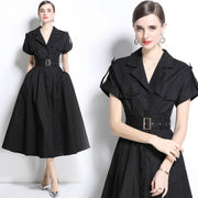 Black Belted Military-Inspired Midi Dress