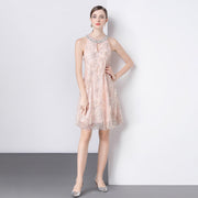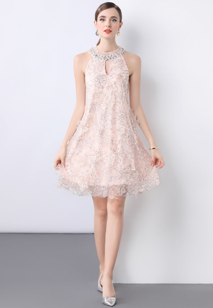 Blush Elegance Embellished A-Line Cocktail Dress