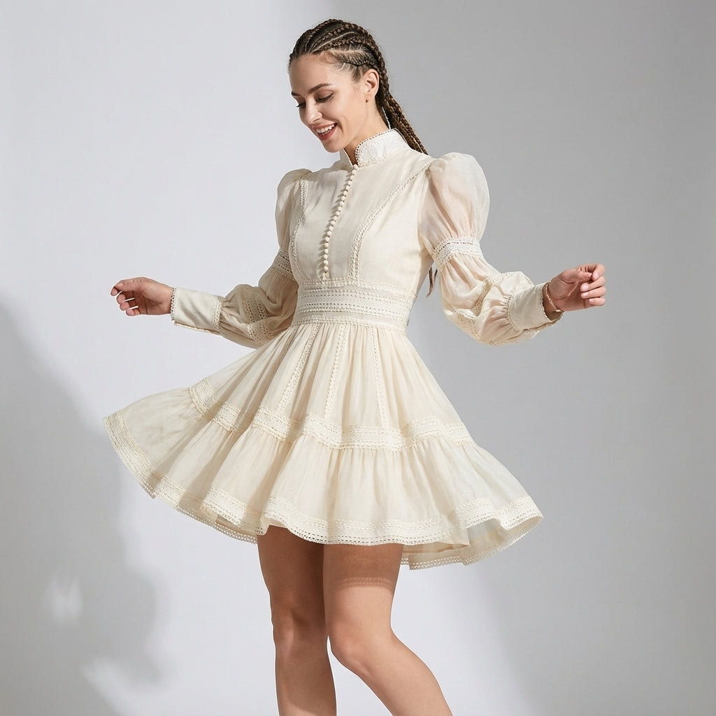 Elegant Puff Sleeve A-Line Short Dress