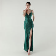 Emerald Allure Beaded Gown