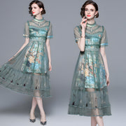 Luxury Silk Thread Embroidery Mesh and Lace Butterfly Sleeve Dress - 6994#616 (EOSS) - XL