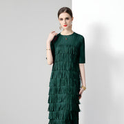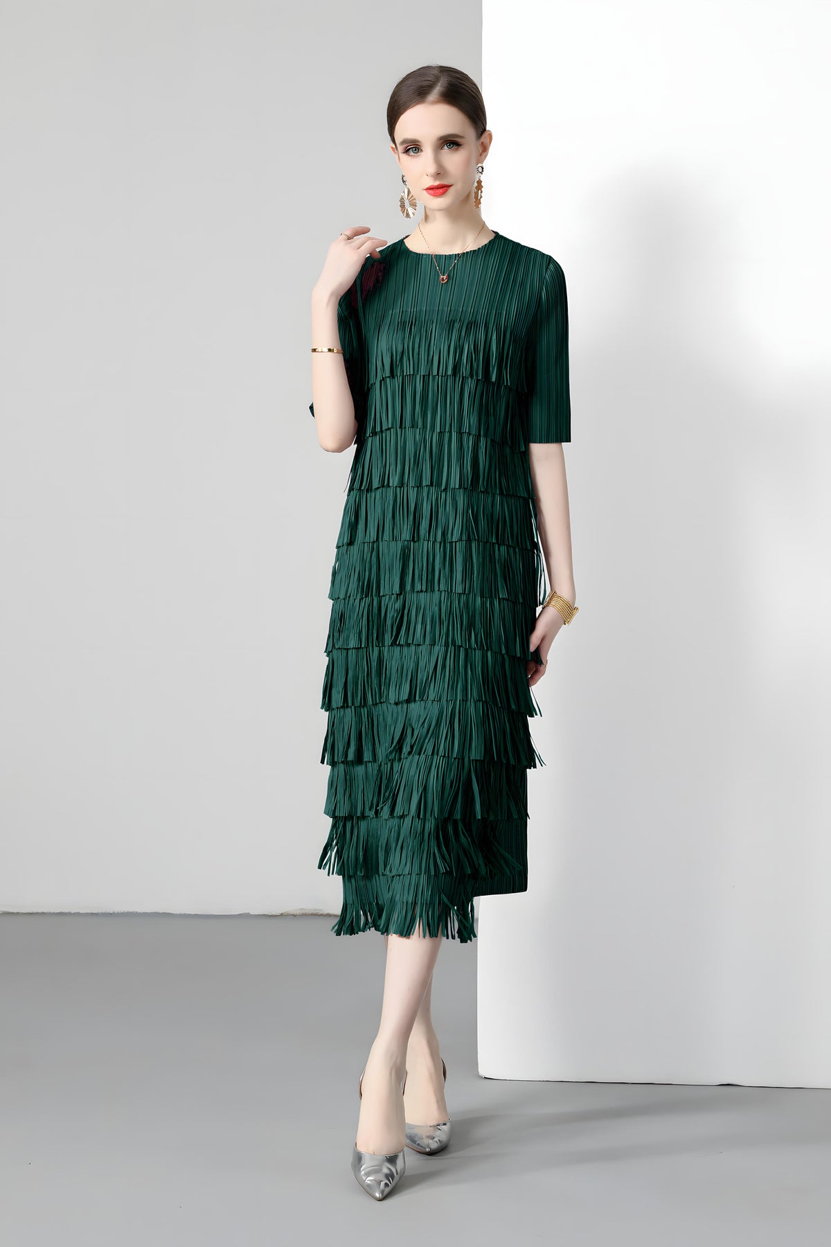 Multitier Fringe Stretchable Free Size Party Bottle Green Dress - 764154489541_ZY_GRE - Free Size