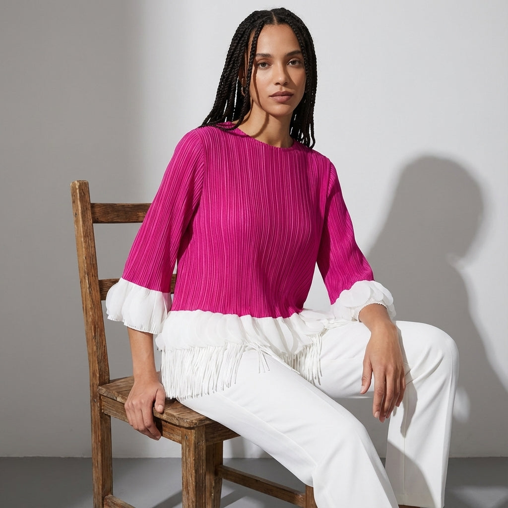 The Miyaki Fringe Top in Rose Res - ONESIZE